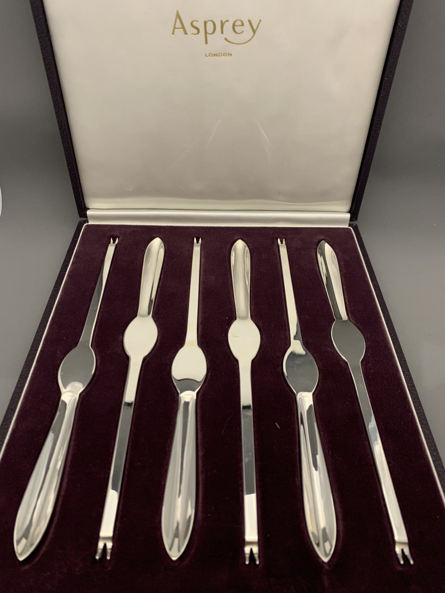 Boxed Set of 6 Silver Lobster Picks