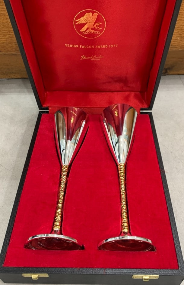 Stuart Devlin Boxed Pair Silver Champagne Flutes