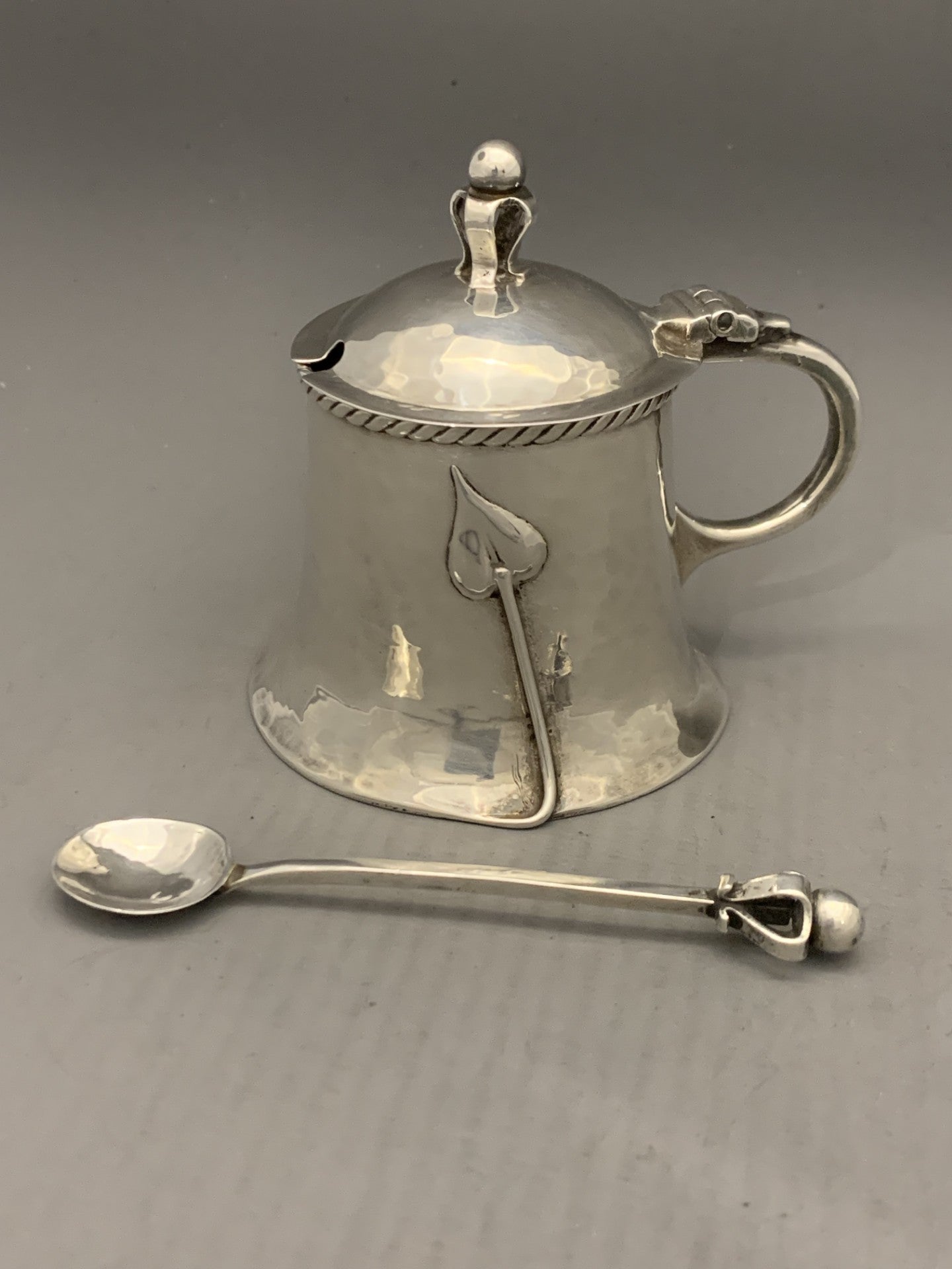 Art Nouveau Silver Mustard Pot & Spoon