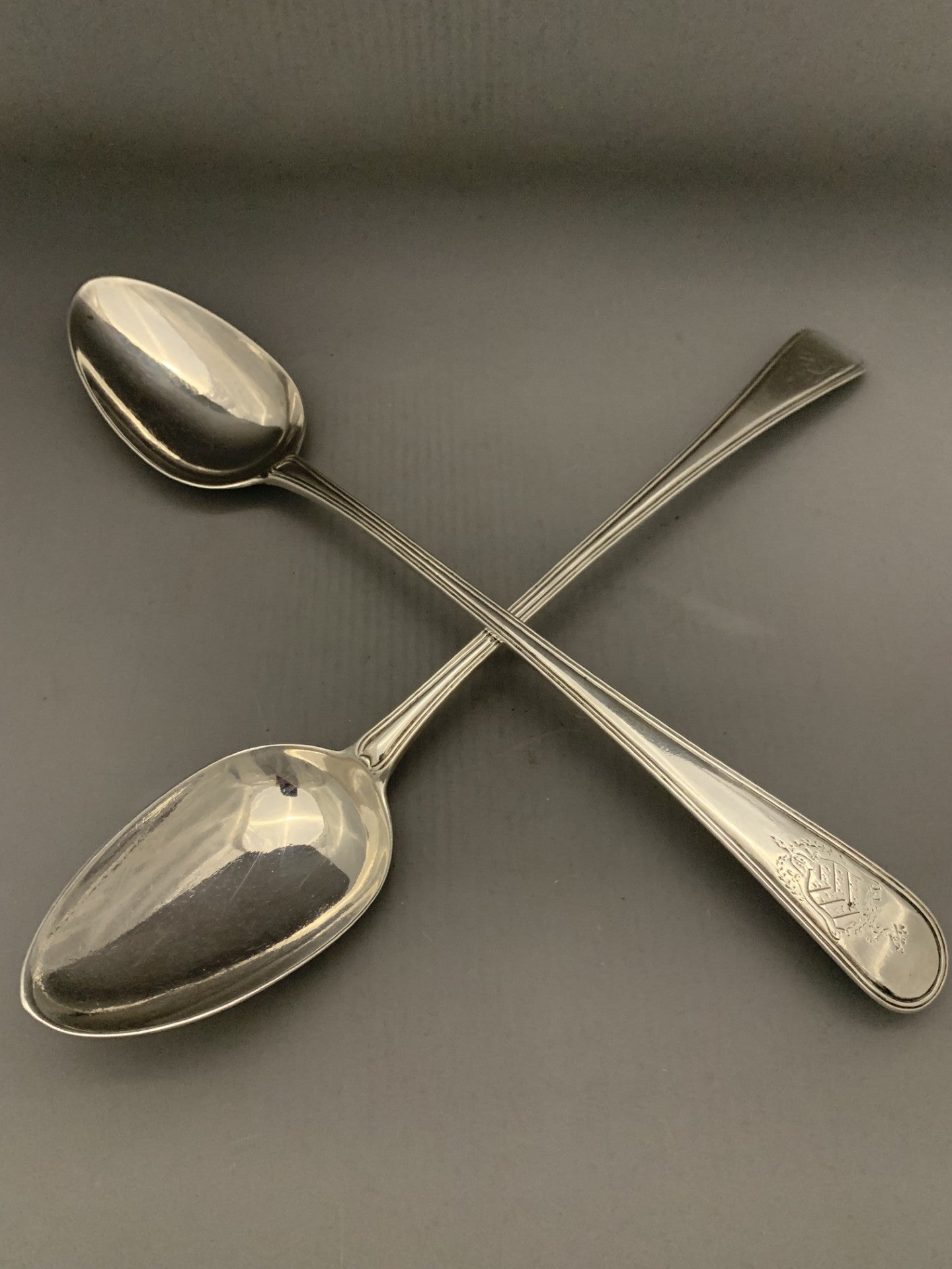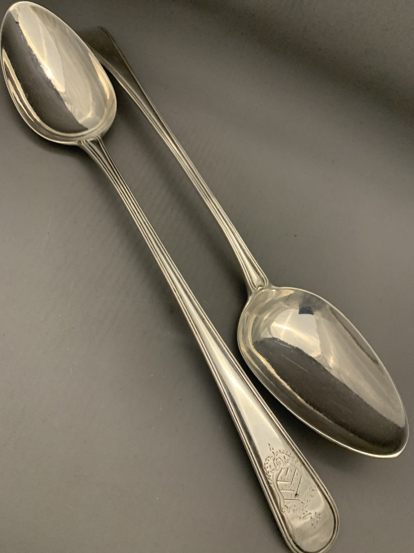 Pair Georgian Silver Basting Spoons - Old English Thread
