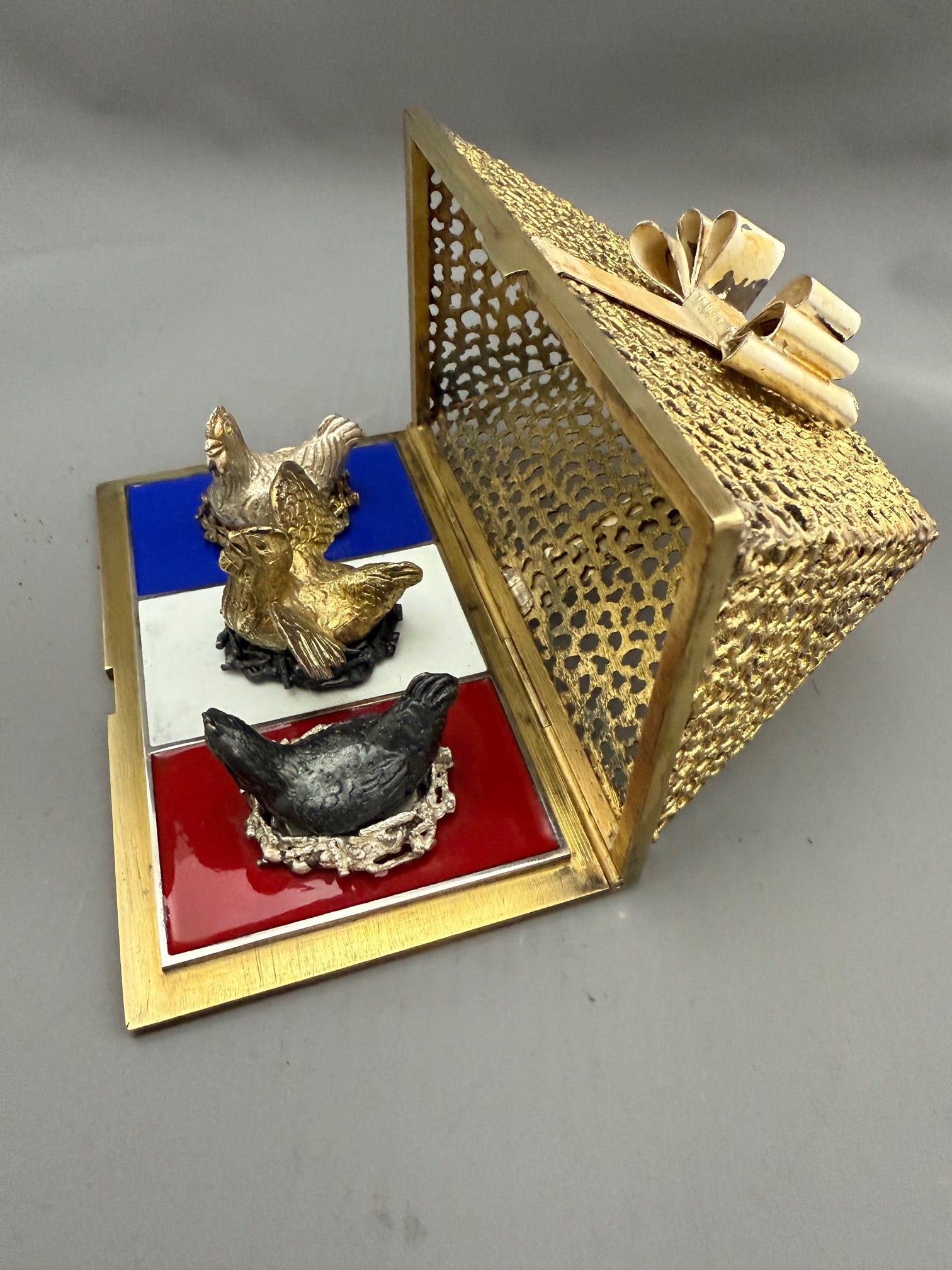 Stuart Devlin Silver Christmas Box - '3 French Hens'